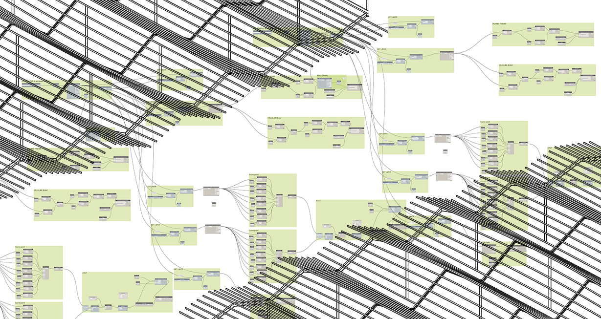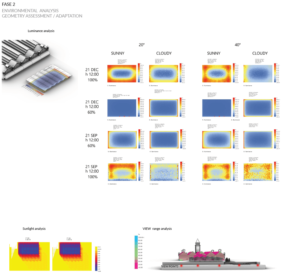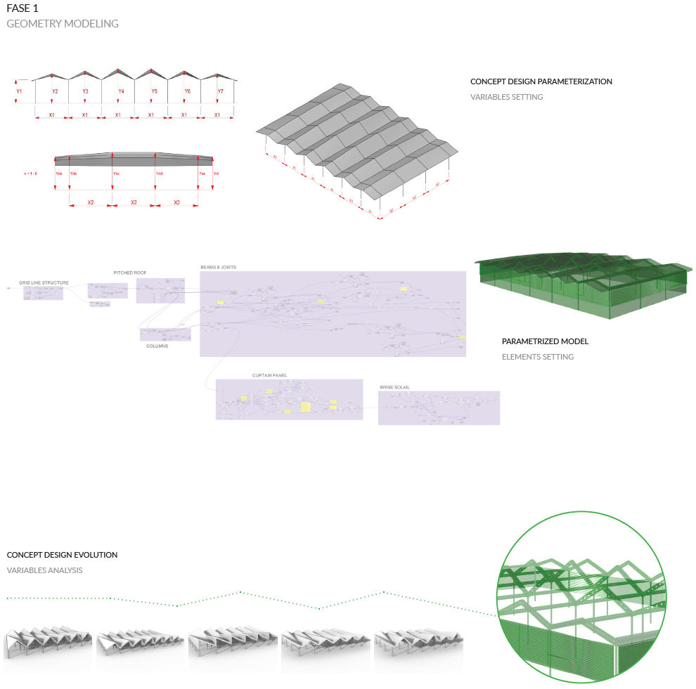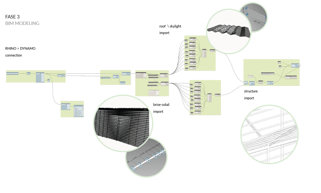 This step allows us to have a concept design perfectly inserted in the environmental system in which it is located and modeled according to aesthetic / formal / functional / environmental evaluations. The final concept design is inserted in the BIM authoring platform of Autodesk, Revit, through the use of the VPL Dynamo platform, thanks to the Rhynamo component, developed by Nathan Miller ( Proving Ground, form. CASE)