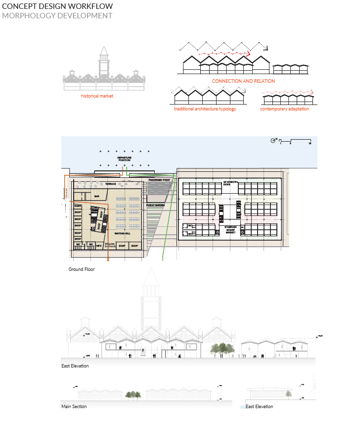 The proposed project for the new Stabroek Stelling and the pier, on the eastern bank of the Demerara River, aims to reconnect this part of the city with its river and to restore the role of the historic market area as a central urban hub, a significant landmark for the city and for the river itself; it is therefore essential that the new project creates a strong connection with it.